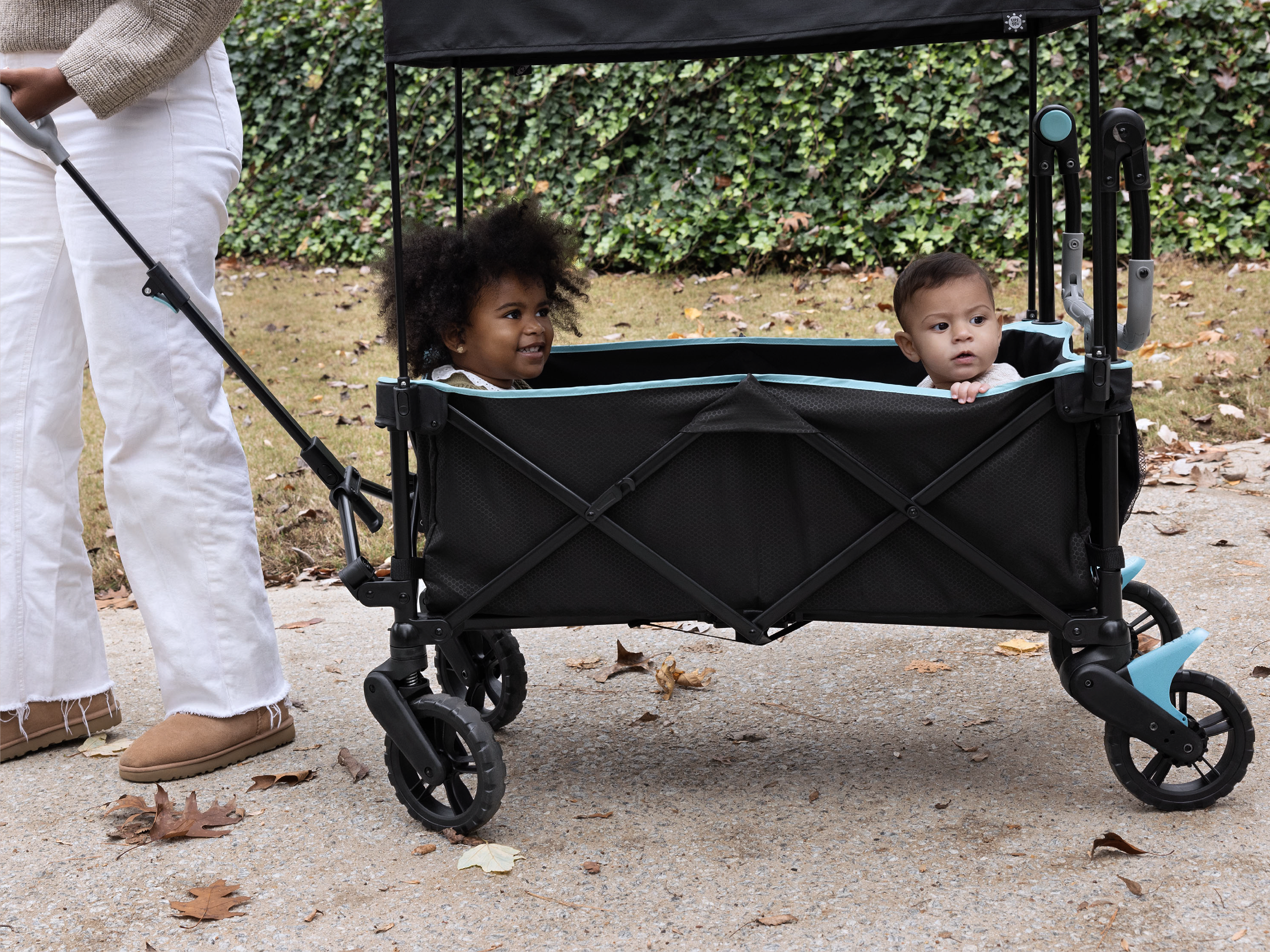 Weighing in at less than 25 pounds, this compact stroller wagon with a snazzy removable canopy is easy to fold and unfold. It's ideal for travel or your family's everyday adventures.