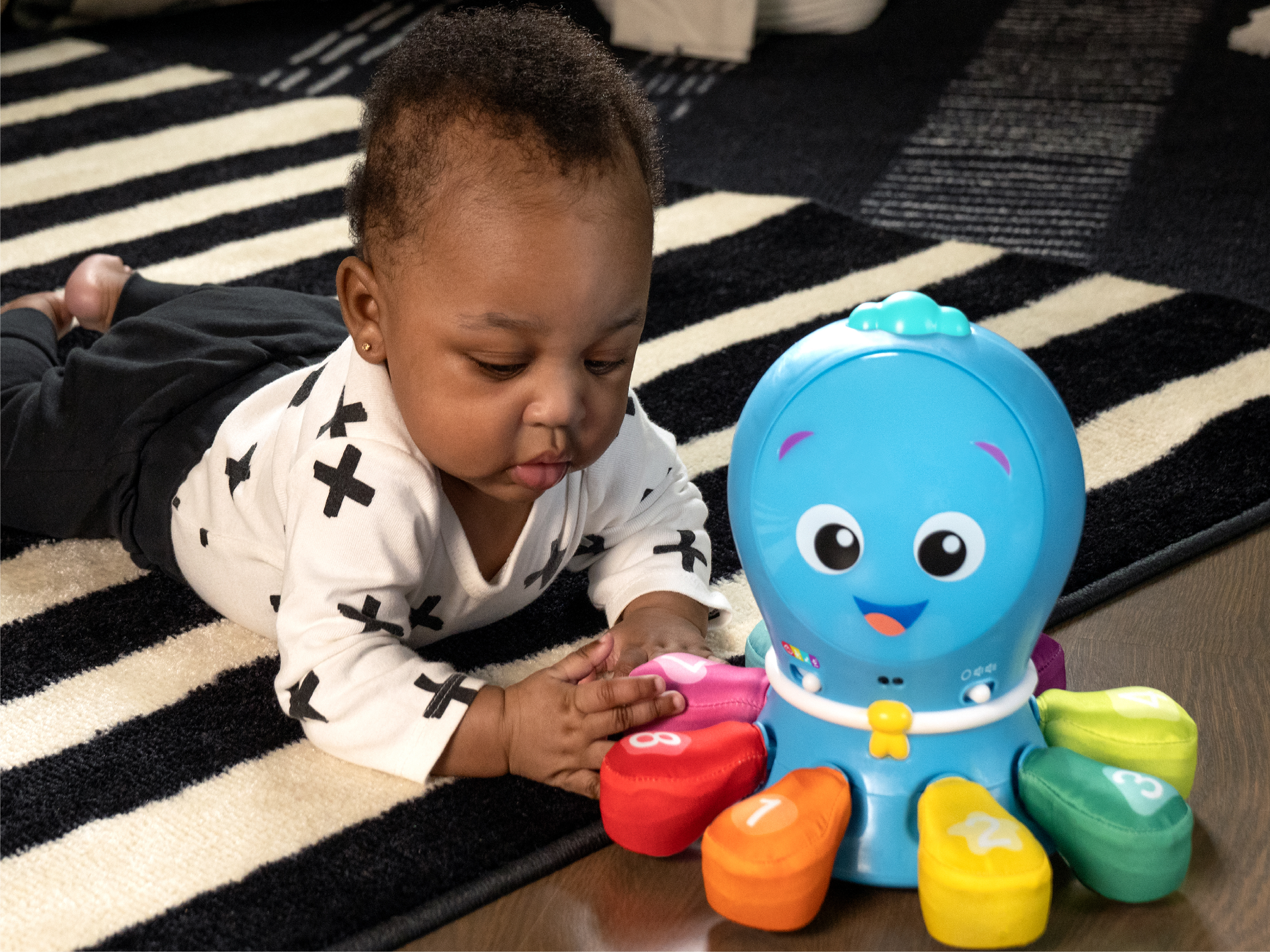 This delightful toy grows with your child from baby to toddler to kid. Go Opus Go encourages gross and fine motor skills, listening skills, and cause and effect learning. It includes more than 150 songs and phrases.